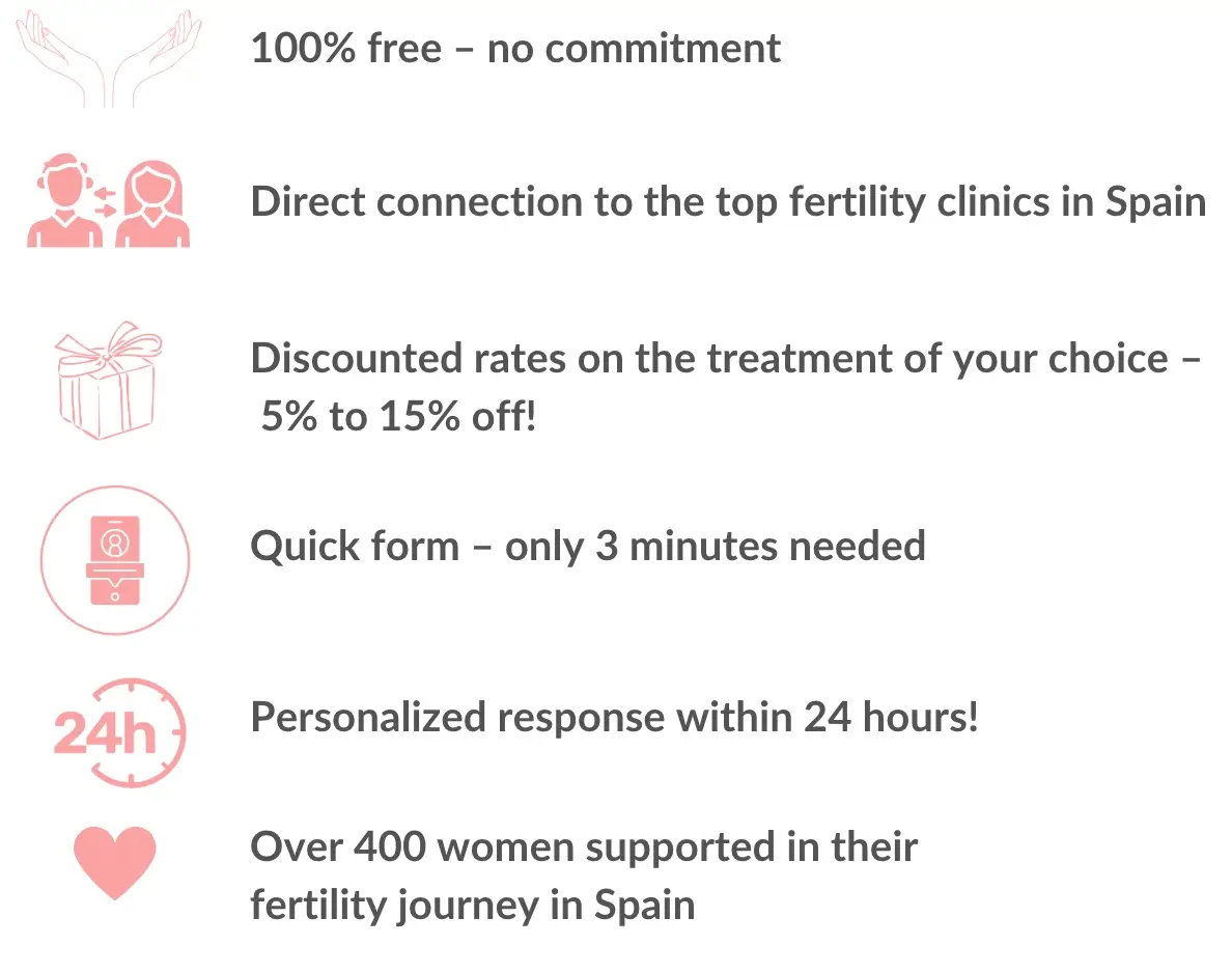 Fill out the form, and up to 4 fertility clinics in Spain will contact you. Trusted clinics, process started in just a few clicks.